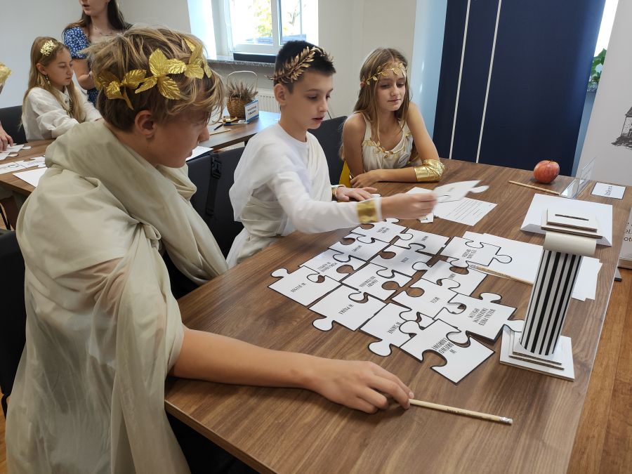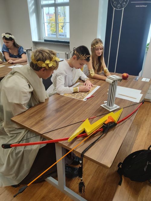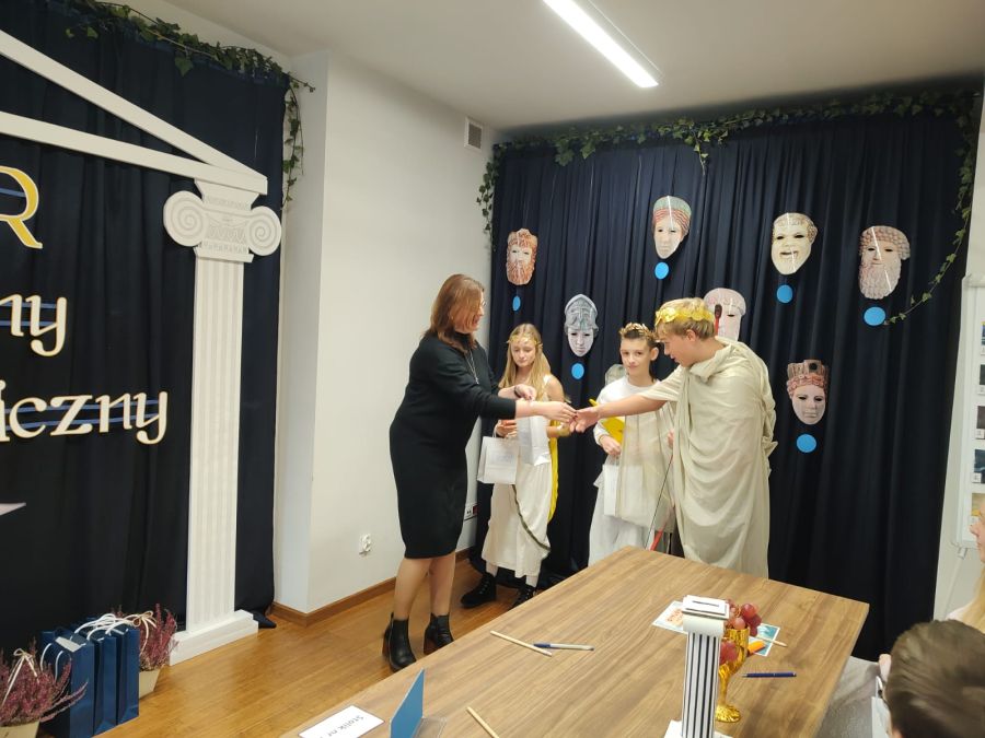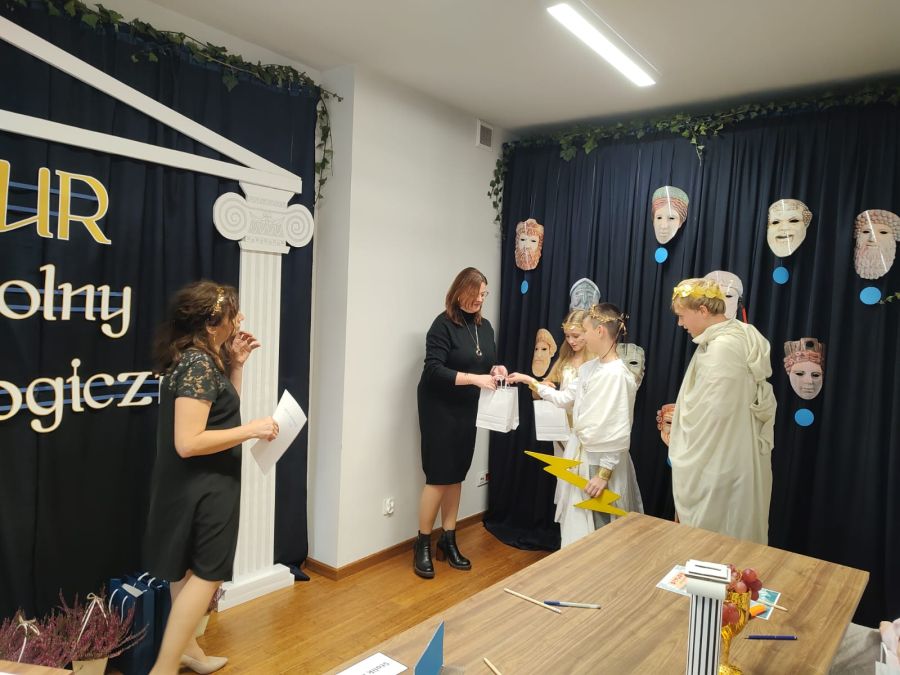 Naszą szkołę reprezentowali: Joanna Paździor z klasy 6a, Olaf Zwolakiewicz z klasy 6b oraz Kamil Wilga z klasy 7a. Uczestnicy mierzyli się z różnorodnymi i niezwykle ciekawymi zadaniami, m.in. układaniem puzzli, kalamburami, rozpoznawaniem miejsc na mapie oraz dopasowywaniem rekwizytów do postaci mitologicznych.