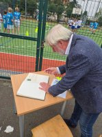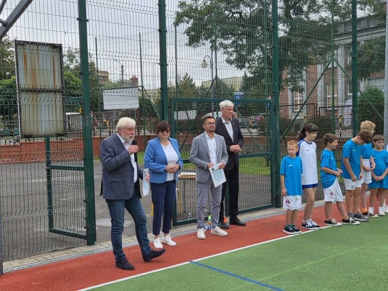 W poniedziałek w naszej szkole odbyło się wyjątkowe wydarzenie – uroczyste otwarcie nowego boiska szkolnego. Od teraz nasi uczniowie mogą cieszyć się piękną, nowoczesną przestrzenią sportową na świeżym powietrzu, gdzie będą odbywać się ciekawe zajęcia wychowania fizycznego oraz emocjonujące mecze. Symbolicznego pierwszego kopnięcia piłki dokonał Burmistrz Miasta – Aleksander Wyra, oficjalnie otwierając boisko. To ważny moment dla całej społeczności szkolnej – mamy miejsce, które będzie sprzyjało aktywności fizycznej, integracji i rozwijaniu sportowych pasji. Dziękujemy wszystkim, którzy przyczynili się do powstania tego boiska. Nie możemy się doczekać pierwszych rozgrywek!