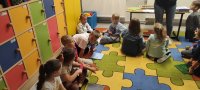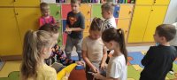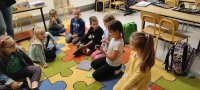 Uczyliśmy się rozpoznawać świat zmysłami - z tej okazji odwiedziła nas p. Monika - szkolny surdopedagog, która opowiedziała nam o tym, jak działają nasze zmysły. Mogliśmy dotknąć materiałów o różnych fakturach, sprawdzić nasz słuch i odgadnąć co kryje się za konkretnymi zapachami. Dowiedzieliśmy się jak poznają świat osoby niewidome i niesłyszące. A na koniec p. Ela zorganizowała nam quiz smakowy. Bardzo podobają nam się akcje organizowane przez Samorząd Uczniowski, dlatego w Dniu Języków Obcych znaleźli się wśród nas przedstawiciele państw europejskich, a Dzień Chłopaka świętowaliśmy na sportowo.