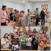 Uczniowie klasy 5b wzięli udział w wyjątkowej godzinie wychowawczej, której motywem przewodnim było zdrowe odżywianie. Zamiast tradycyjnych zajęć, uczniowie wspólnie przygotowali i zjedli pełnowartościowe śniadanie, pokazując, że zdrowe może być również smaczne!Podczas zajęć przyrządzaliśmy koktajle owocowe – do wyboru były wersje malinowe i truskawkowe. Każdy mógł skomponować swój napój według własnych upodobań, ucząc się przy tym, jak łatwo można przygotować zdrową przekąskę w domu. Do śniadania serwowano również aromatyczne herbaty owocowe, które idealnie dopełniły wspólny posiłek. Całe spotkanie przebiegało w miłej, rodzinnej atmosferze, a uczniowie mieli okazję nie tylko dobrze zjeść, ale także porozmawiać o tym, dlaczego warto dbać o swoje zdrowie na co dzień.To była godzina pełna smaków, uśmiechów i pozytywnej energii!